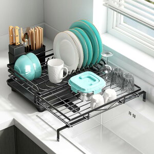 【商品仕様&大容量収納】伸縮式水切りラック / 材質:ステンレス+防錆コーティング / サイズ:長さ30-51*幅41-51*高さ14CM 重さ:1.69kg。多用途&省スペース水切りラック:この水切りかごは食器ごとにエリアを分けて...