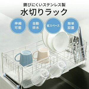 サビにくいステンレス製の水切りラック。洗い物の量に合わせて伸縮できるタイプなので、コンパクトにも大容量にもなります。水受けトレーも一緒にスライド可能で水滴をしっかり受けとめます。サイズ幅39.5×奥行...