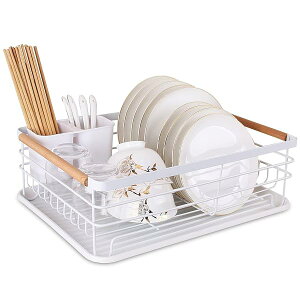 水切りラック 食器 水切りかご 食器乾燥ラック 横置き 錆びない 木製ハンドル 大容量 キッチン収納 ディッシュラック 皿立て 箸収納 多機能 持ち運び簡単 組み立て不要 省スペース ホワイトブランド...