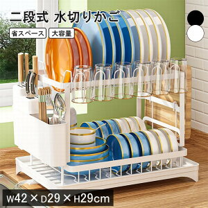 水切りラック 横置き 水切りかご 錆びない 2段式 自動排水 大容量 ディッシュラック キッチン収納 水が流れる 食器乾燥 皿立て 箸収納 包丁スタンド まな板立て 組み立て簡単 31*44*33cm...