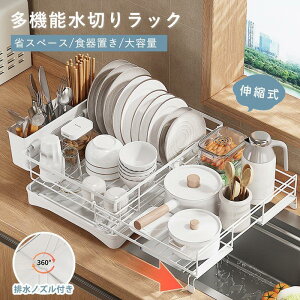 【送料無料】水切りラック シンク上 伸縮 横置き ステンレス 食器水切り 乾燥 大容量 洗い物ラック ディッシュラック キッチン 水切りカゴ 包丁スタンド まな板立て 皿立て 多機能収納 組み立て簡単...