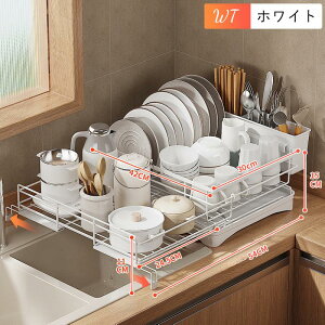 キッチンのスペースが充分に利用できます。茶碗、箸、スプーン、カップ等を一括に収納できます。 【省スペース×大容量】 シンクにまたがって使え、カゴをスライドだけで収納容量が調節できます。 普段はコンパ