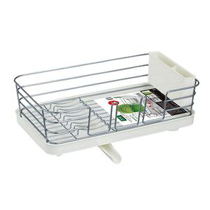2段式食器ラックですので、お皿や茶碗、箸、スプーン、カップ等を一括に収納できます。水が流れるトレーと排水口が付いているので、トレーに水が貯まりません。排水時でトレーの水捨て不要でシックへ向かって緩やかに水滴を促します。