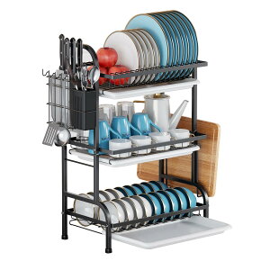 水切りラック 食器 水切り かご 2段式 食器乾燥ラック 横置き 自動排水 錆びない 大容量 キッチン収納 水が流れる ディッシュラック 皿立て 箸収納 包丁スタンド まな板立て 多機能 組み立て簡単...
