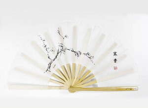 太極拳 扇 豪華 竹骨 チャイナ風 カンフーファン 水墨画 梅 花 武道 ダンス パフォーマンス 開閉 簡単 ステンレス アルミニウム