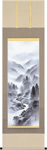 この掛軸は季節関係なく年中飾れる掛け軸です。 ●初めて掛軸を飾られる方にもおすすめの水墨山水シリーズです。 ●水墨画に始まり水墨画に終わる。見る人に安らぎと安堵感を与えてくれる奥深い水墨の世界を代表する優れた作品です...