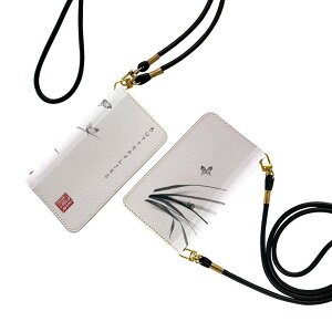 商品特徴・ショルダー付き手帳型スマホケース・シームレスな全面デザイン(内側は落ち着いたオフホワイト)・外側は高品質の人工革を使用・内側にはスマホを装着するケースが付属・機種専用のカメラホール仕様でケースを装着したまま