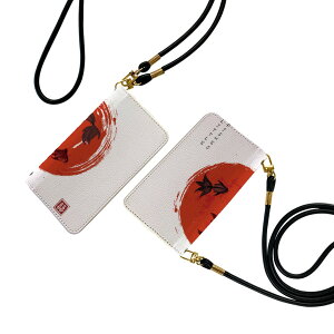 商品特徴・ショルダー付き手帳型スマホケース・シームレスな全面デザイン(内側は落ち着いたオフホワイト)・外側は高品質の人工革を使用・内側にはスマホを装着するケースが付属・機種専用のカメラホール仕様でケースを装着したまま
