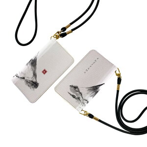 商品特徴・ショルダー付き手帳型スマホケース・シームレスな全面デザイン(内側は落ち着いたオフホワイト)・外側は高品質の人工革を使用・内側にはスマホを装着するケースが付属・機種専用のカメラホール仕様でケースを装着したまま