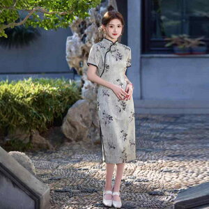 ・カテゴリ: チャイナドレス・スタイル: 文芸レトロ・主な素材: ポリエステル95%以上、スパンデックス5%以下・着丈: ロング・ネックライン: スタンドカラー・襟型: 斜め襟・袖丈: 三分袖・スリット: ロータイプ・デザイン要素: ...