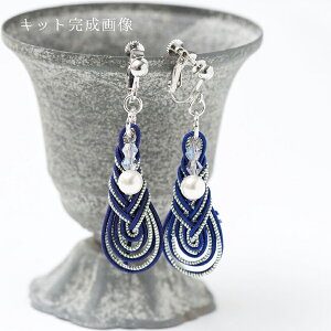 ビーズアクセサリー作家として活動されているKellyさんデザイン、水引で作るイヤリングのキット。深みのある色がお洒落です。シックなカラーの水引、パール、カットビーズを使用した洗練されたデザインです。和の伝統工芸の技法を使い
