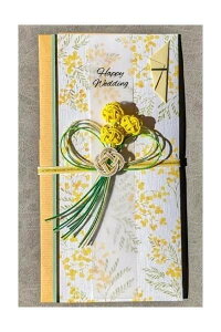 ※サプライヤー直送品 全面に印刷された花は水彩画タッチで優しい雰囲気になります。HappyWedding、寿、御結婚御祝、無地の短冊4枚入り。HappyWeddingが箔押しされた短冊のみトレーシングペーパー素材になっています。中袋付...