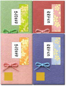 万円型サイズの祝儀袋です。 色彩豊かで繊細な色を刷り重ねた祝儀袋が3枚入った商品です。 おしゃれな結びきりの水引と熨斗も印刷されているデザインとなっております。 また、婚礼時