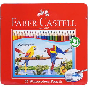 アクェレル色鉛筆 24色 絵画が簡単に描ける水彩色鉛筆(メタルケース入り) ● 色鉛筆の持ち味と水彩画の風合いを同時に引き出すことができます。 ● 特殊な顔料を使用した柔らかな芯は、全60色のバリエ