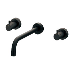 【125-004-D】 カクダイ 壁付2ハンドル混合栓//マットブラック●取付穴径スパウト、ハンドル31〜32ミリ●対応壁厚10〜20ミリ●上部 水側:070-001 湯側:070-000●先端金具取...