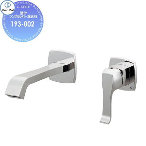 商品名壁付シングルレバー混合栓品番193-002。●取付穴径スパウト38〜39ミリ、ハンドル52〜53ミリ。●対応壁厚20〜28ミリ。●ハンドルはスパウトの左・右に設置可能。