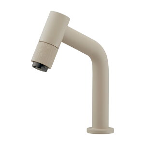 取付穴径22〜28ミリ・厚5〜35ミリ。先端部をまわして吐水、止水。必要最小限の部品で構成されたミニマムデザインです。