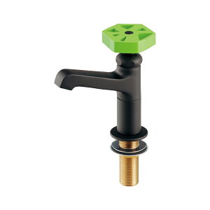 取付穴径22〜27ミリ・厚5〜35ミリ。節水固定コマ仕様(一般地・寒冷地共用)。本体塗装仕上げ。ハンドル:ライムグリーン。呼径13。カラー マットブラック/ライムグリーン。材質:POM・ステンレス・青銅・黄銅。