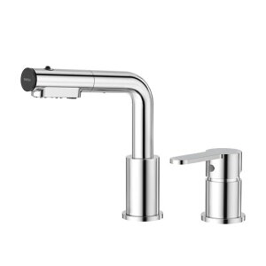 シャワーが切り替え可能 【ホース引き出し式、吐水口昇降、360°回転】ホース引き出し最大長さ約88cm、吐水口昇降最大高さ約14cm、洗髪することも楽々! 【水栓仕様】3穴/2穴に取付可能 水栓取付穴径:Φ25-27mm...