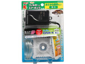 No.1水中フィルターロカボーイのSコンパクトサイズをセット。エアーポンプがセットになっているから、はじめてでも簡単です。