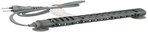 難燃性プラスチックカバーと温度ヒューズ付きの安全仕様。縦方向にもセットできるので自由なレイアウトが可能です。鑑賞魚用ヒーター安全対策協議会統一基準適合商品