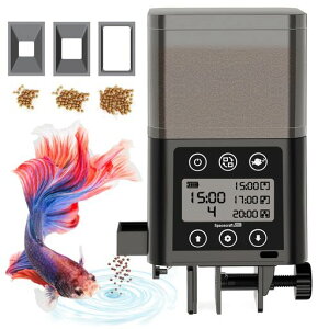 自動給餌器魚 インテリジェント給餌器-自動給餌器は給餌時間と給餌量を自自由に設定することができます。1日3回の給餌時間と、1回の給餌量を0~3回に設定できます。設置された時間になると自動的に餌が与えられます...