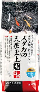 『特長』 阿蘇の土壌から採掘した天然土をメダカ飼育に適した粒の大きさに加工。 天然ミネラルを含有。 メダカのミネラル吸収を助けるフルボ酸配合。 排泄物から出るアンモニア、亜硝酸を吸着し、メダカにやさしい水質をつくる。 通水