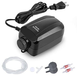 FEDOUR 2つ吐出口の静かな水槽エアーポンプ 4W可調節 水槽に酸素提供 アクセサリー付きエアポンプ 黒色