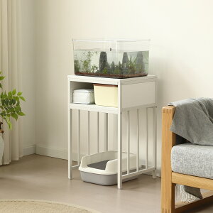 天板には最大60cm幅・30cm奥行きの水槽を設置可能で、下段には飼育用品をすっきりと収納できるシンプルでスタイリッシュなラックです。エサやフィルター、メンテナンス用具、ウォーターポンプなど、さまざまなアイテムを一つにまとめて
