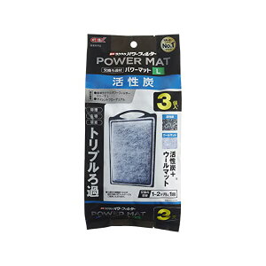 ●物理・生物・吸着 トリプルろ過。活性炭+ウールマット。●【トリプルろ過システム】1.ウールマットで水中のゴミを取り除く物理ろ過。2.マットに繁殖したろ過バクテリアが、食べ残しやフン等を分解する生物ろ過。3.活性炭がニゴリや悪