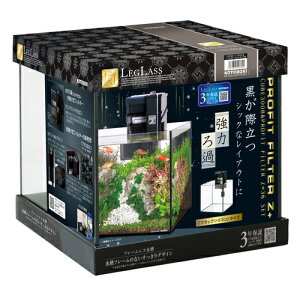 【商品特長】 シンプルでスタイリッシュなレグラスフラット水槽とプロフィットフィルターZ+シリーズがセット!「プラスBOX」外掛け式フィルターの新発想!上方向に広がる開放的な水槽 【セット内容】 水槽/ウレタンマット/フタ/外掛け式