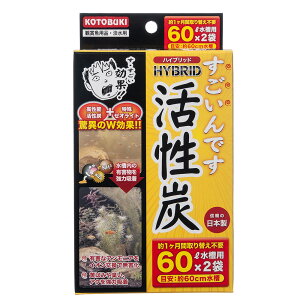 メーカー:コトブキ高性能活性炭+特殊ゼオライトのW消臭効果!コトブキ すごいんです活性炭 60対象淡水用特長●アクアリウムに適した国産の粒状木質炭を厳選して使用した活性炭です。●高度に発達した多くのハニカム形状のミクロ孔