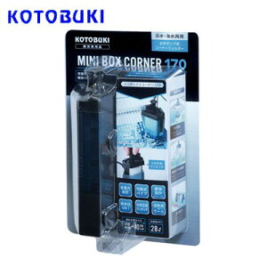 kotobuki ミニボックスコーナー170 『特長』 コーナーにぴったりフィットで水槽内すっきり! 魚や水槽レイアウトに合わせて流量調節が可能です。 ヘッドカバーを引き上げるとろ過材も一緒に抜けてワンタッチ交換! 水中ポンプが下部に設置