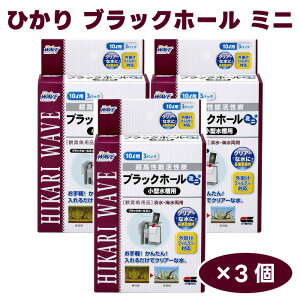 ブラックホール ミニ 10L用 3パックの商品詳細】 ●小型水槽向けに、10L用が3パック(3回分)入り ●外掛けフィルターに対応 ●飼育水の黄ばみと臭いを強力に吸着し、クリアーな水を長期間維持します。 ●約3ヶ月間効果が持続...