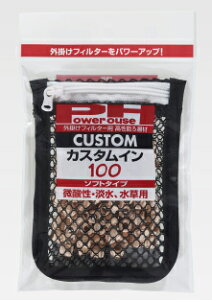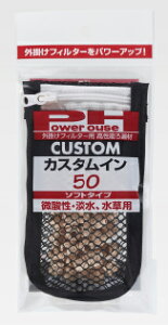 簡単セットで、外掛けフィルターをパワーアップ! パワーハウスと同素材の高性能ろ過材「カスタムS」を特殊ネットに内蔵した、外掛けフイルター用のろ過材製品です。 フィルター内にセットするだけで、ろ過能力を大幅にアップできます