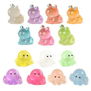 水槽 オーナメント ミニチュア 発光 蛙 置物 フィギュア ミニ置物 ミニチュア 夜光装飾可愛い 水槽用アクセサリー 水槽 園芸 盆栽 水槽用アクセサリー 情景小物 (光る蛙7セット、光るイカ7セット)...