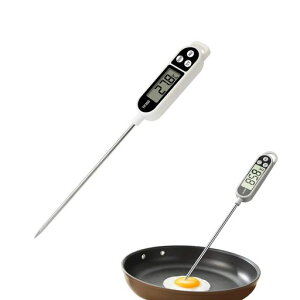 【速読高精度】:クッキング温度計のステンレス製の検温部を油やお湯など測りたい料理につけると2-3秒だけで温度を表示します。調理用温度計の測定可能範囲は-50°C~300°C、精度はプラスマイナス0.8°Cです。軽量で扱いやすく、台所に...