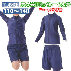 全国の学生服店で取り扱われているトップエース社製。 ニュートラル水着(男女兼用)、長袖セパレートタイプ(上下セット)です。 お色はネイビー無地となります。 豊富なサイズ展開です。 〇胸や腰部分にゆとりがある体型カバーのセパ