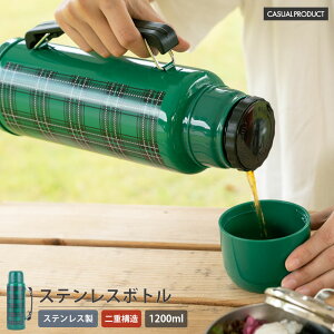 おしゃれなチェック柄とレトロなフタが魅力の水筒。保温・保冷力が高く、洗いやすく、たっぷり1200mlの容量でアウトドアにも最適です。