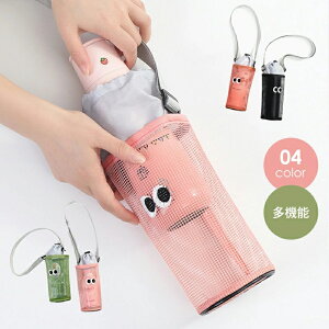 ●目玉の刺繍が可愛いメッシュボトルホルダー 水筒や500mlのペットボトルがすっぽり入る大きさ。 中身が見える透け感は、ボトル類だけでなく 小物を入れてもかわいい優秀アイテム♪ 口元を絞るドローコードも便利なポイント...