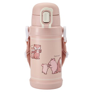 ワンプッシュオープンで、飲みたい時に"サッ"と飲めるステンレスボトル☆ ネームプレート付きのショルダーベルト。真空二層構造なので、保冷効果が長持ち♪