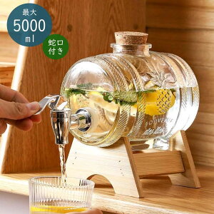 冷水筒 2300ml ガラス製 ピッチャー 水差し 麦茶ポット 果実酒 ジュース ドリンク 木製スタンド付き