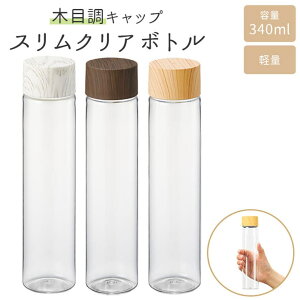 ・軽くて持ち運びしやすさ抜群な、スリムクリアボトルが登場!・シンプルなクリアボディに、木目調のキャップがアクセント♪・容量は340mlと、お出掛け先でのちょっとした水分補給にぴったりなサイズ感。・スリムで軽量なので、カバン