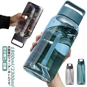1800ml/2300ml 大容量のウォーターボトルです。常温で水分補給をするアスリートやヨガなど、スポーツシーンで大活躍します。持ち手がついており持ち運びも便利です。サイドに目盛りが付いているので、...