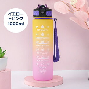 水筒 1L 目盛り付き 水筒 ストロー 1リットル ウォーターボトル タイムマーカー 携帯便利 通学通勤