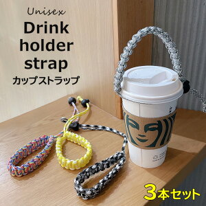 テイクアウトドリンクのカップをお洒落に持ち運べるストラップのご紹介です♪ 4色展開 テイクアウトカップストラップ ドリンクホルダー ボトルストラップ■ 商品説明テイクアウトドリンクを手提げにするドリンクホルダー。 ハンドメイ