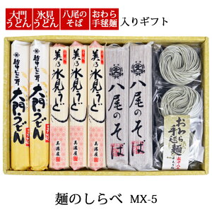 富山づくしの色々な麺が楽しめる、うどんとそばの贅沢セット 麺4種セットMX-5 です。どれにしようか迷ったときにおすすめのギフトです。 長年培われた大門素麺の製法を取り入れコシの強さと喉ごしの良さが絶品の 大門うどん...