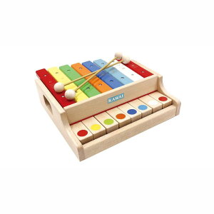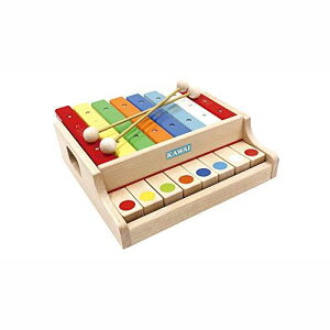 対象年齢 :18月以上素材: 木材対象性別: unisexサイズ: 280×380×85 mm木の鍵盤を指で叩くと木琴を打鍵するシロホンピアノです。 バチで音板を叩いて木琴としても遊べるハイブリッド設計です。バチ2本と鍵盤用8色シール...