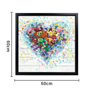 鮮やかな色彩が躍るハート型を中心にした、ポジティブなエネルギーに満ちた創作絵画です。情熱、幸福感、安心感を同時に喚起するよう設計されています。ハートの歪みが意図的な「手作り感」を演出し、プレゼントに最適な温かみを表現