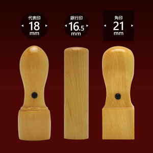 ak-3bf27 ■商品構成 代表印・・・丸天丸21ミリ 銀行印・・・丸天丸21ミリ 角印・・・・角天丸27ミリ (ケースは別売です) ■印材説明 東南アジアに生育するアカネ科の樹木が原材料です。 本柘と比較すると、成長が早く樹木も太...